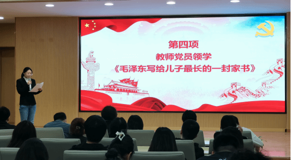 随后,教师党员陈琳琳领学《毛泽东写给儿子最长的一封家书》、辅导员高贤伶领学《一纸满是“谎言”的家书》并分享感悟。红色家书,是革命先辈们留下的无比珍贵的精神财富,通过一起的细细品读,从中感受并传承共产党人的坚定信念与绝对忠诚、革命豪情与人间大义,并将其融会成为各族师生前进路上源源不竭的精神力量。