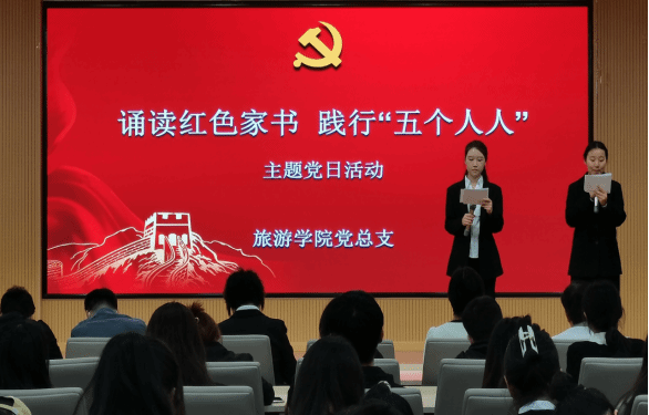 为落实学校党委“五个人人”重大工作部署的深入推进,有形有感有效地铸牢各族师生中华民族共同体意识,为旅游学院的蓬勃发展凝聚起更加强大的精神力量,喀什大学旅游学院党总支于2023年3月15日,在学院706报告厅开展了“诵读红色家书,践行‘五个人人’”三月主题党日活动。旅游学院全体教师党员、在校学生党员、入党积极分子及发展对象参加此次活动,学院党总支书记刘秀明莅临指导。