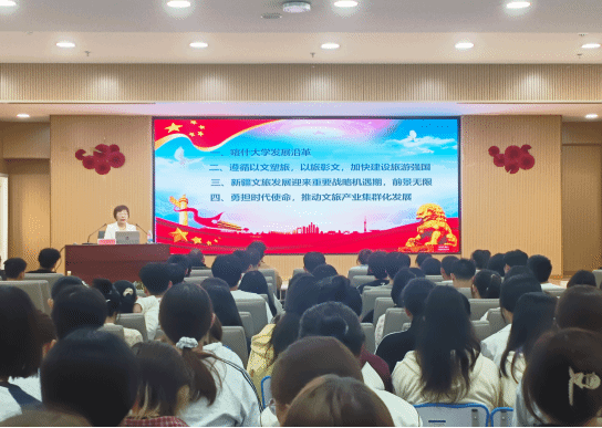 同时,刘秀明书记特别强调了大学生在新时代的使命与担当,作为新时代的大学生,要时刻保持清醒的头脑,坚定理想信念,勇于担当责任。通过不断学习和实践,提高自己的综合素质和能力水平,为旅游业的发展和国家的繁荣富强贡献自己的青春和力量。