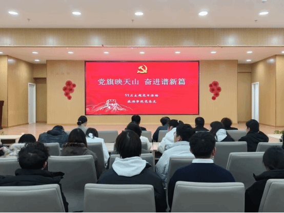 为深入学习贯彻党的二十届四中全会精神,凝聚师生党员奋进力量,筑牢基层党组织战斗堡垒,11月19日,喀什大学旅游学院于学院楼706报告厅举行“党旗映天山,奋进谱新篇”主题党日活动。学院全体党员师生踊跃参与。