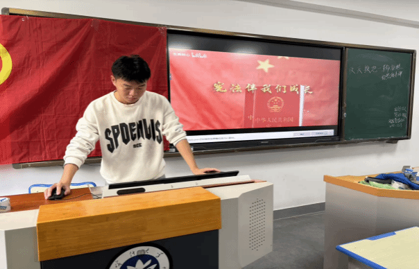学院以班级为单位开展《学法・知法・遵法・守法・用法》主题宣讲活动,各班级播放《宪法伴我们成长》等官方普法视频,围绕“网络言论边界”“校园权益维护”等现实议题开展情景演绎,由学生骨干担任宣讲员,结合典型案例阐释“尊法是前提、学法是基础、守法是关键、用法是保障”的逻辑关系,切实将宪法学习从“被动接受”转为“主动参与”。