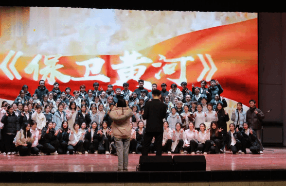 本次比赛中,旅游学院合唱团特邀音乐与舞蹈学院大四学长担任指挥。在指挥的专业引领下,团员们以饱满的热情、精湛的演唱技艺,将《保卫黄河》中蕴含的中华民族不屈不挠、奋勇抗争的精神展现得淋漓尽致。歌声时而如黄河奔腾咆哮,激荡着爱国豪情;时而似流水潺潺,饱含着对祖国山河的深情眷恋。现场评委与观众被这震撼的表演深深感染,掌声经久不息。