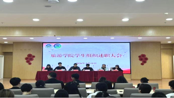 为全面总结学生组织工作成效,明确新学期发展方向,2026年3月11日,旅游学院在学院楼706报告厅隆重召开学生组织述职大会。旅游学院党总支副书记王毅韬、团委各位老师出席会议,学院学生会、团委、乐游旅游文化协会及党建全体成员共同参会。