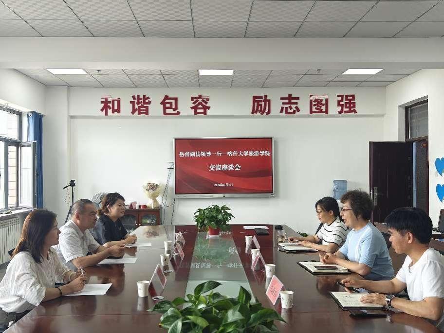 6月7日,岳普湖县迎宾馆负责人闫梅、新疆达瓦昆文旅发展投资集团有限公司总经理叶明等一行5人莅临旅游学院,与学院领导进行了深入的交流座谈。