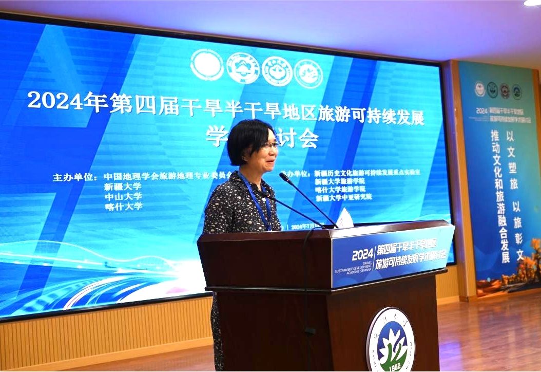 为了贯彻落实党的二十大报告关于进一步“加快发展数字经济,促进数字经济和实体经济深度融合”,推进绿色低碳发展,不断增强新疆国际国内旅游竞争力,使“文化润疆”“旅游兴疆”战略与新时代数字经济相得益彰,同时为深入探讨干旱半干旱地区旅游可持续发展以及喀什地区旅游产业的转型升级,由中国地理学会旅游地理专业委员会、新疆大学、中山大学、喀什大学联合主办,新疆历史文化旅游可持续发展重点实验室和新疆大学旅游学院、喀什大学旅游学院、新疆大学中亚研究生承办的“2024年第四届干旱半干旱地区旅游可持续发展国际学术研讨会”,于2024年7月14日在喀什大学举办。参加本次学术研讨会的专家学者来自美国天普大学、中山大学、南京大学等二十余所高校。