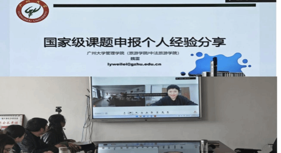 新学期伊始,旅游学院秉持“早谋划、强落实、出实效”的原则,采用“专家引领 + 团队攻坚 + 长效跟踪”的“三步走”策略,系统且有序地推进有组织的科研工作。3月18日下午,学院精心组织开展了科研讲座与申报辅导活动。在专家引领环节中,学院邀请广州大学魏雷教授开展课题申报专题讲座。讲座由援疆副院长罗靖同志主持。
